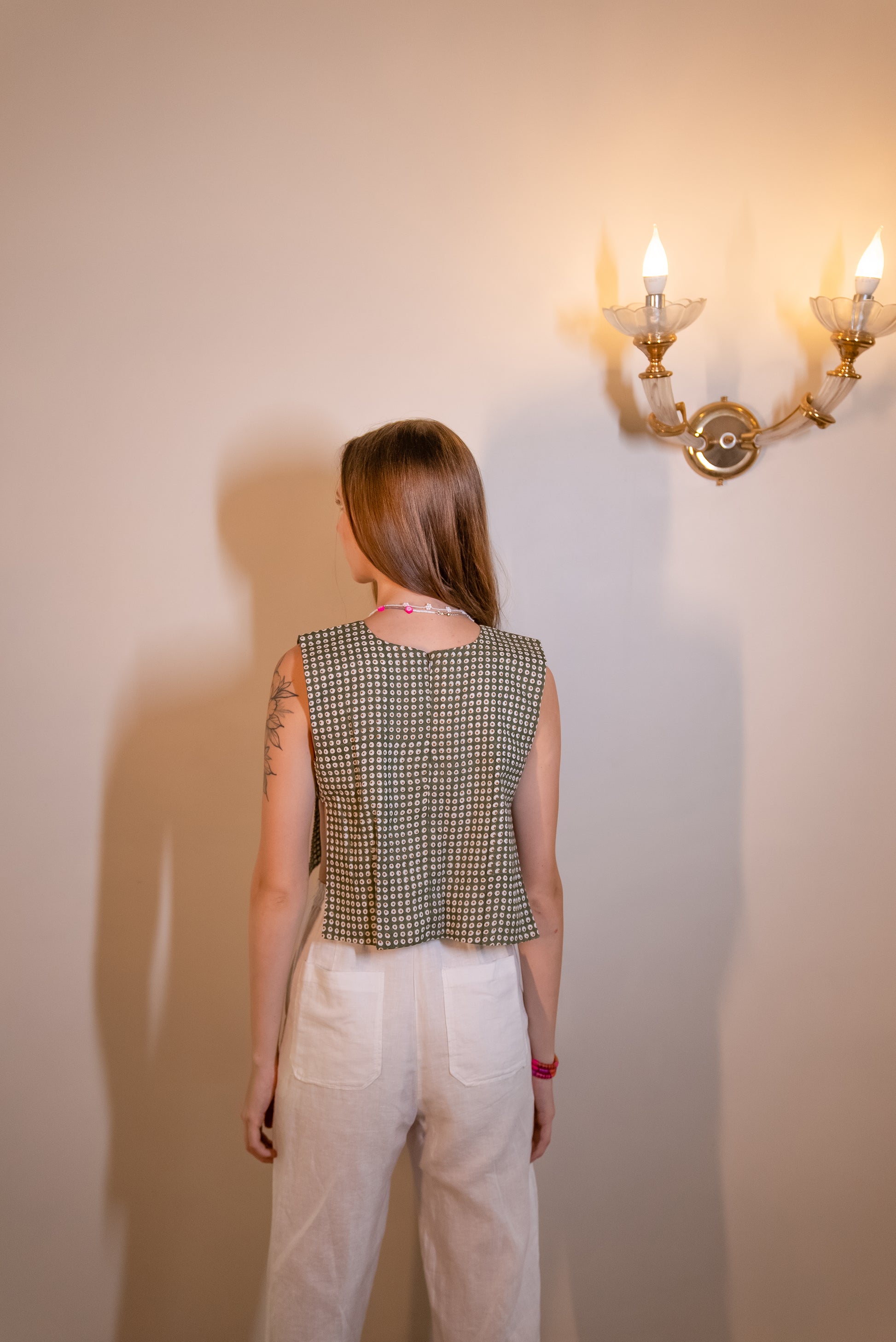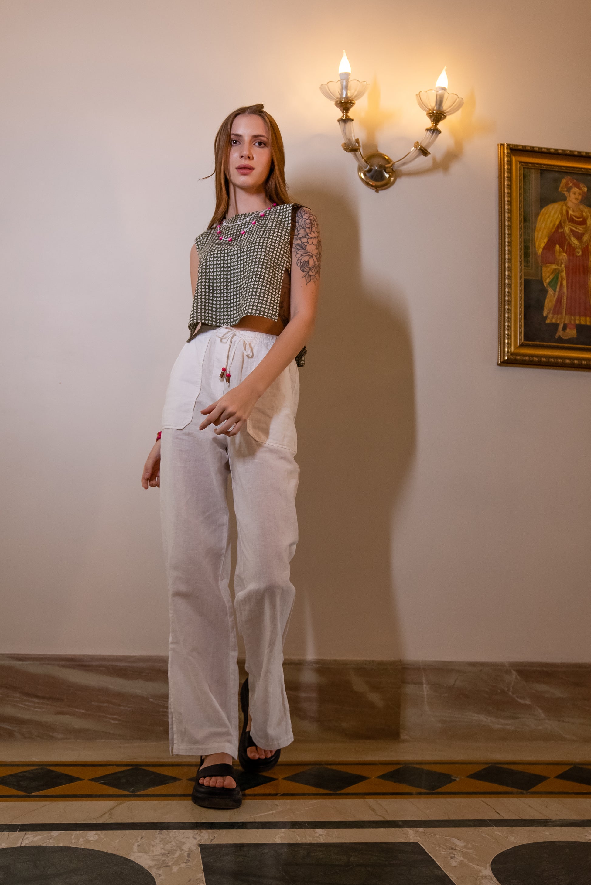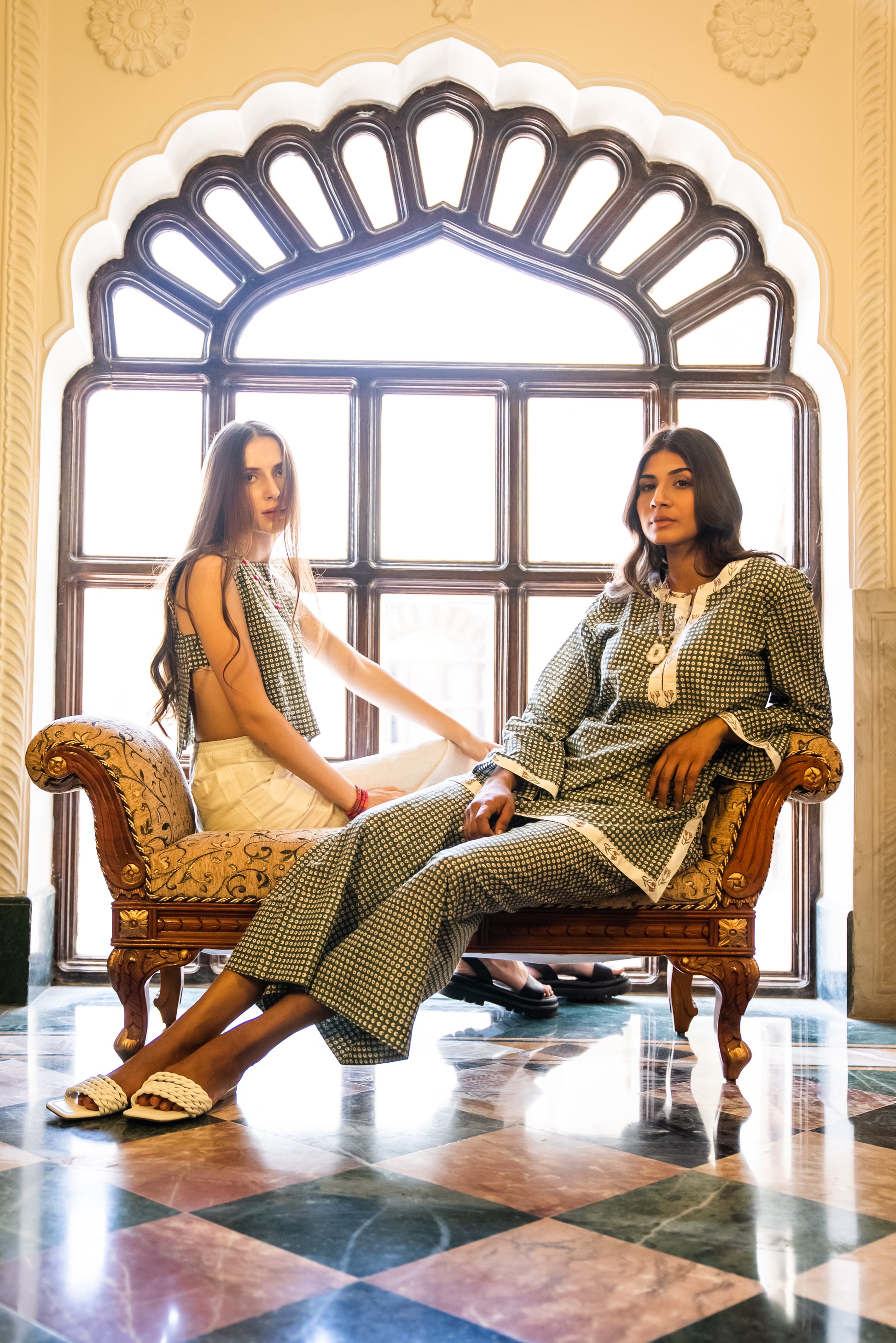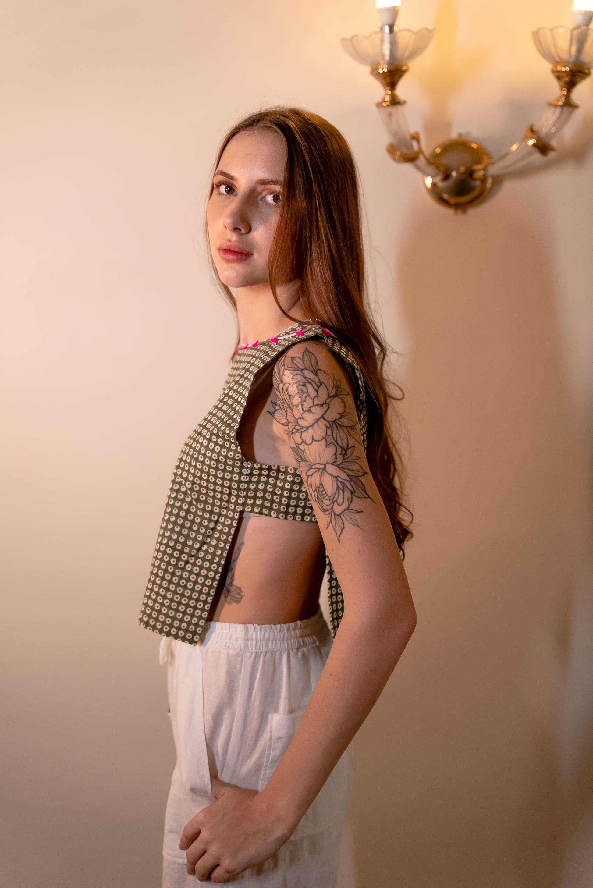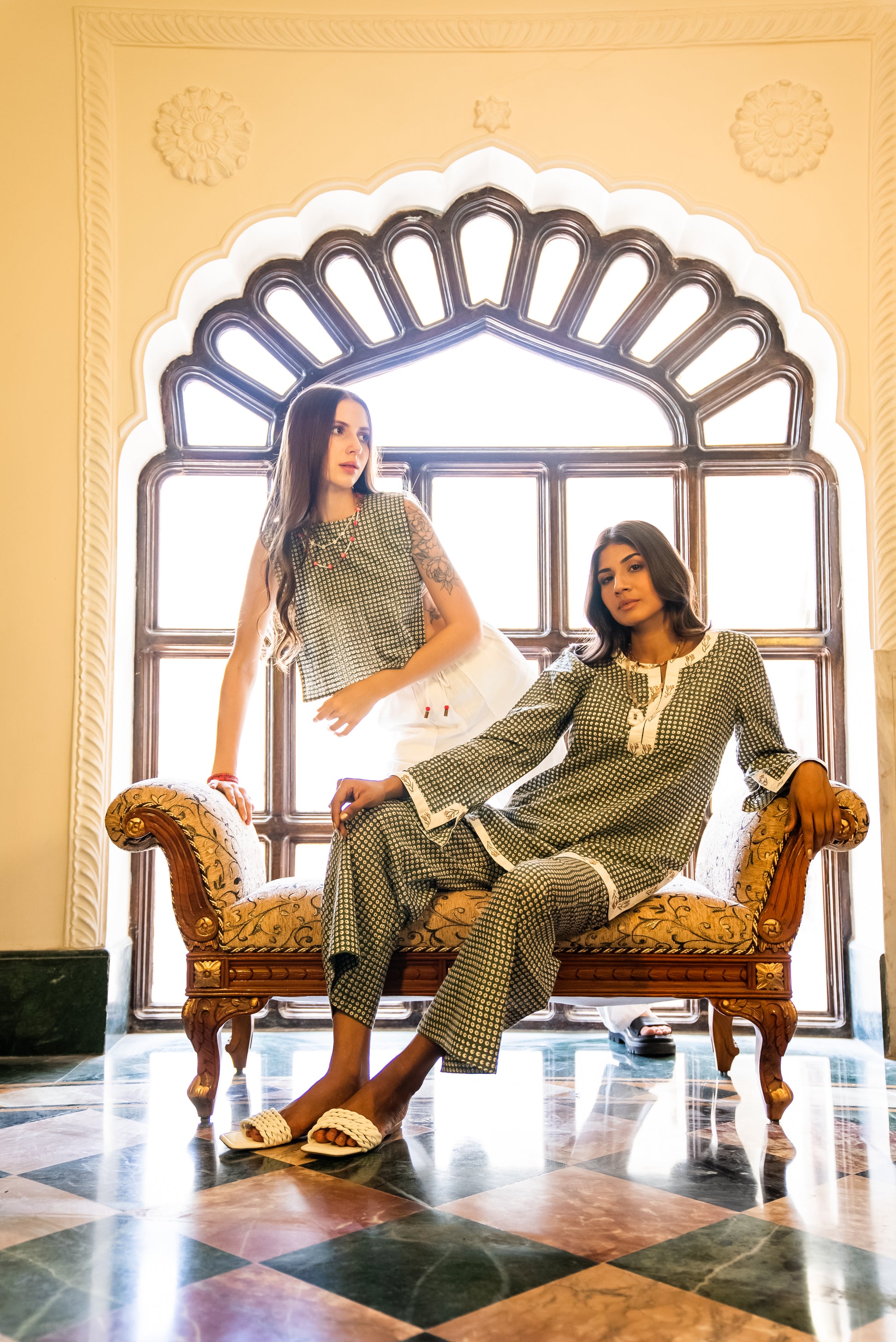 Our Green Top is the perfect choice for a fashionable yet comfortable look this summer. Made from lightweight block print fabric, this top features side cuts for a unique and stylish design. Enjoy a cool and breezy look with the Green Top.